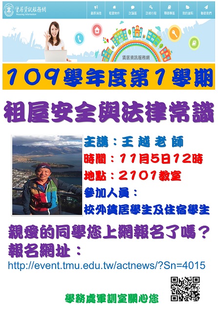 | 研討會名稱 | 109-1學期賃居生講座(第一場:租屋法律常識與糾紛處理) |