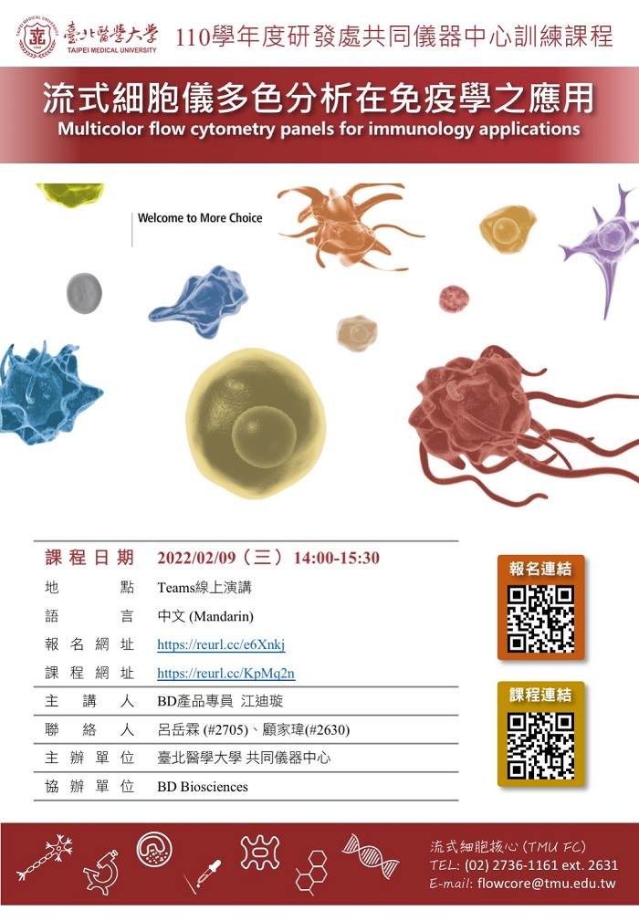活動說明敬邀參加 111/02/09-流式細胞儀多色分析在免疫學之應用(中文)(14:00-15:30)