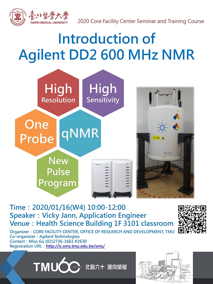 | 活動說明 | The course【109/01/16-Introduction of Agilent DD2 600 MHz NMR(English)】is rescheduled. This course will be held in early March. If you need to use this machine, Please contact us directly, Thank you~ Welcome to join 109/01/16-Introduction of Agilent DD2 600 MHz NMR(English)(10:00-12:00) Time:109/01/16 10:00-12:00 Venue:Health Science Building 1F 3101 classroom Registration Dead line:109/01/15 Registration URL: http://ic.xms.tmu.edu.tw/xms/index.php?view=content_show&id=2608 Due to the limited size of the place, please register as soon as possible. If you want to know any other things, please contact us, thank you~ |