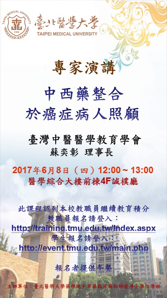 研討會名稱106/06/08中草藥學程專家演講_蘇奕璋理事長【中西藥整合於癌症病人照顧】