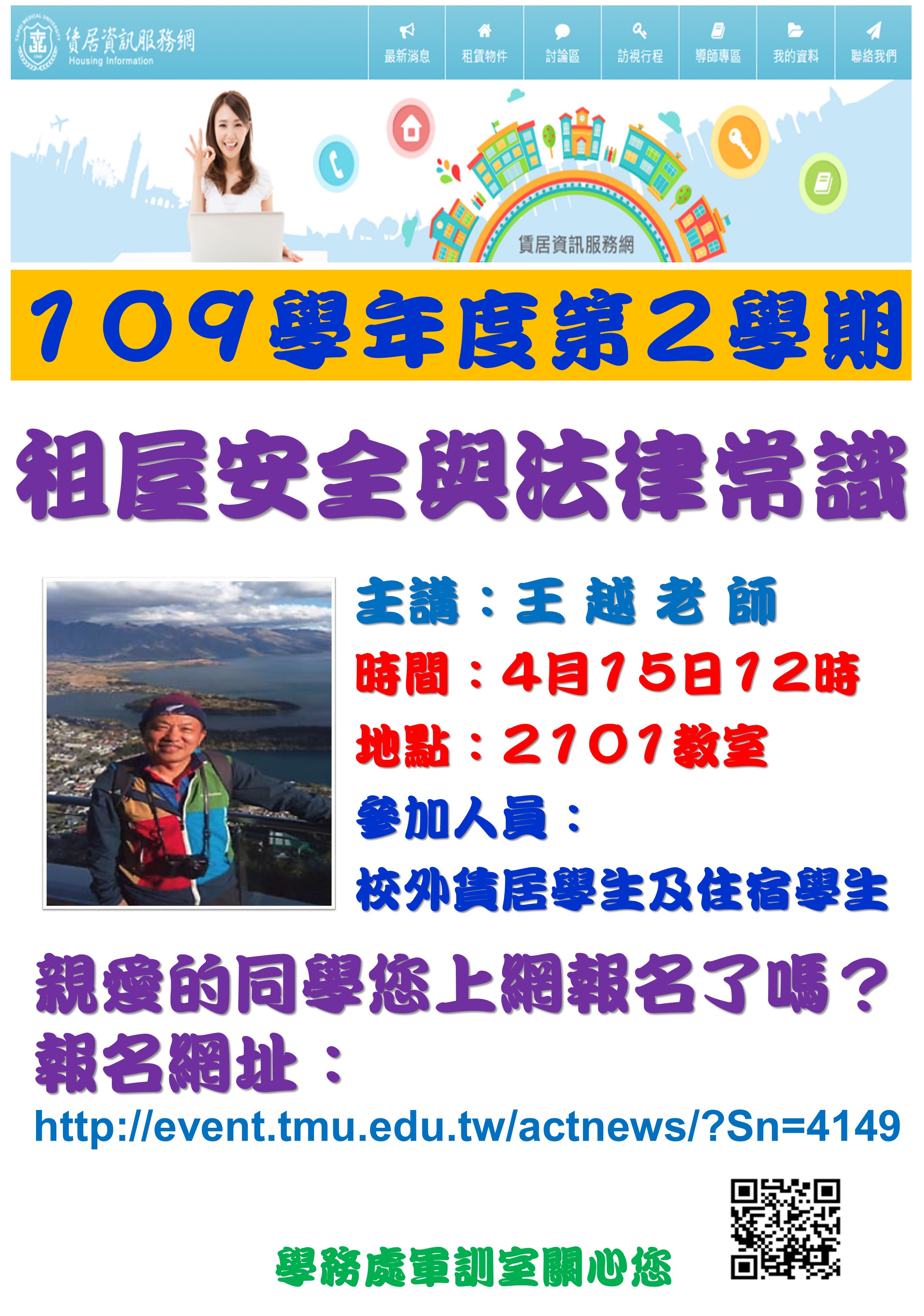 | 研讨会名称 | 109-2學期赁居生讲座(第一場:租屋法律常识與纠纷处理) |