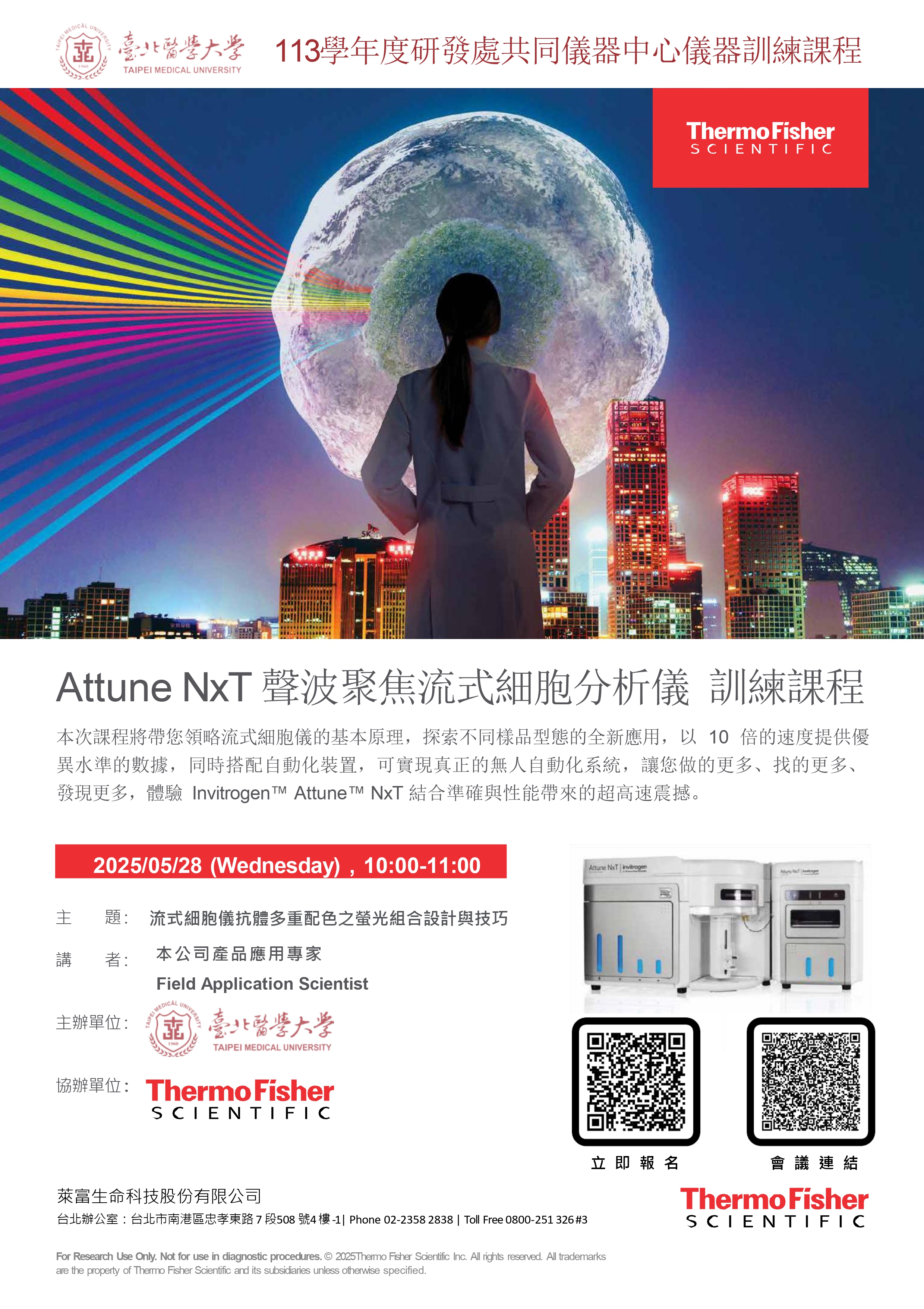 | 研讨会名称 | 114/05/28-2025.05.28 Attune NxT训练课程: 多色组合设计(中文)(10:00-11:00) |