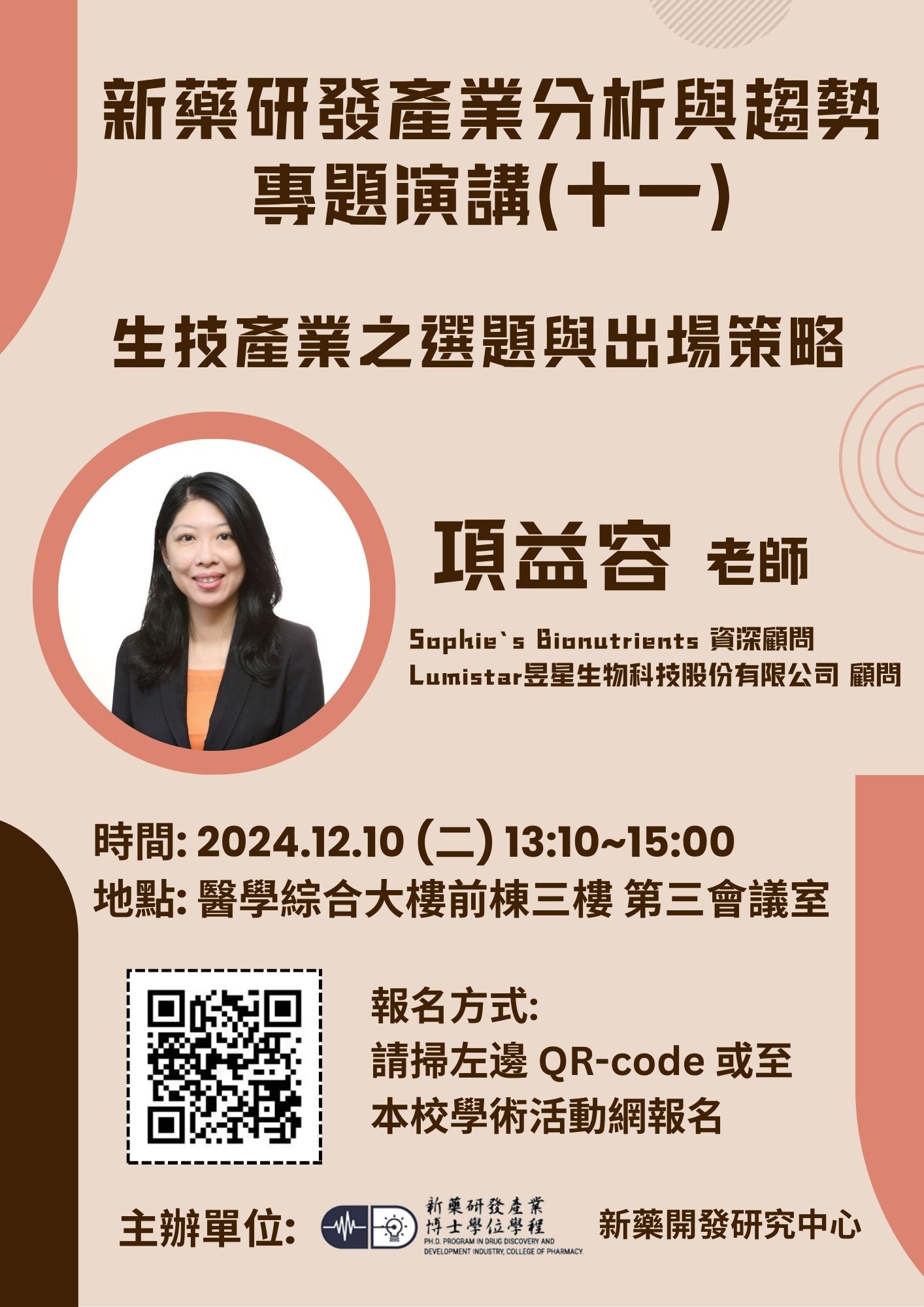 新藥研發產業分析與趨勢專題演講(十一): 生技產業之選題與出場策略