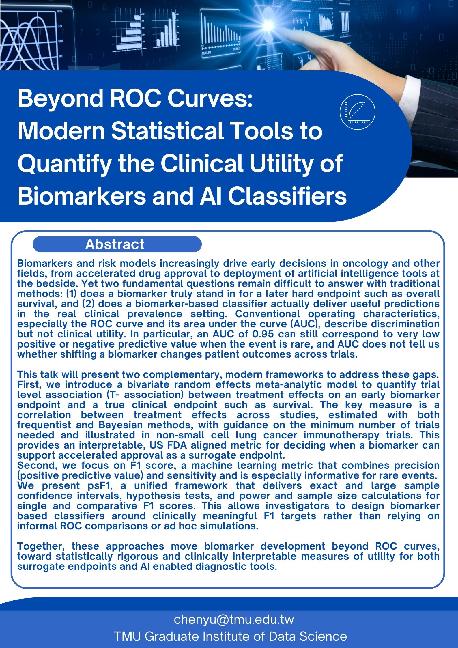 【演講】2025.12.17(三)Beyond ROC Curves: Modern Statistical Tools to Quantify the Clinical Utility of Biomarkers and AI Classifiers