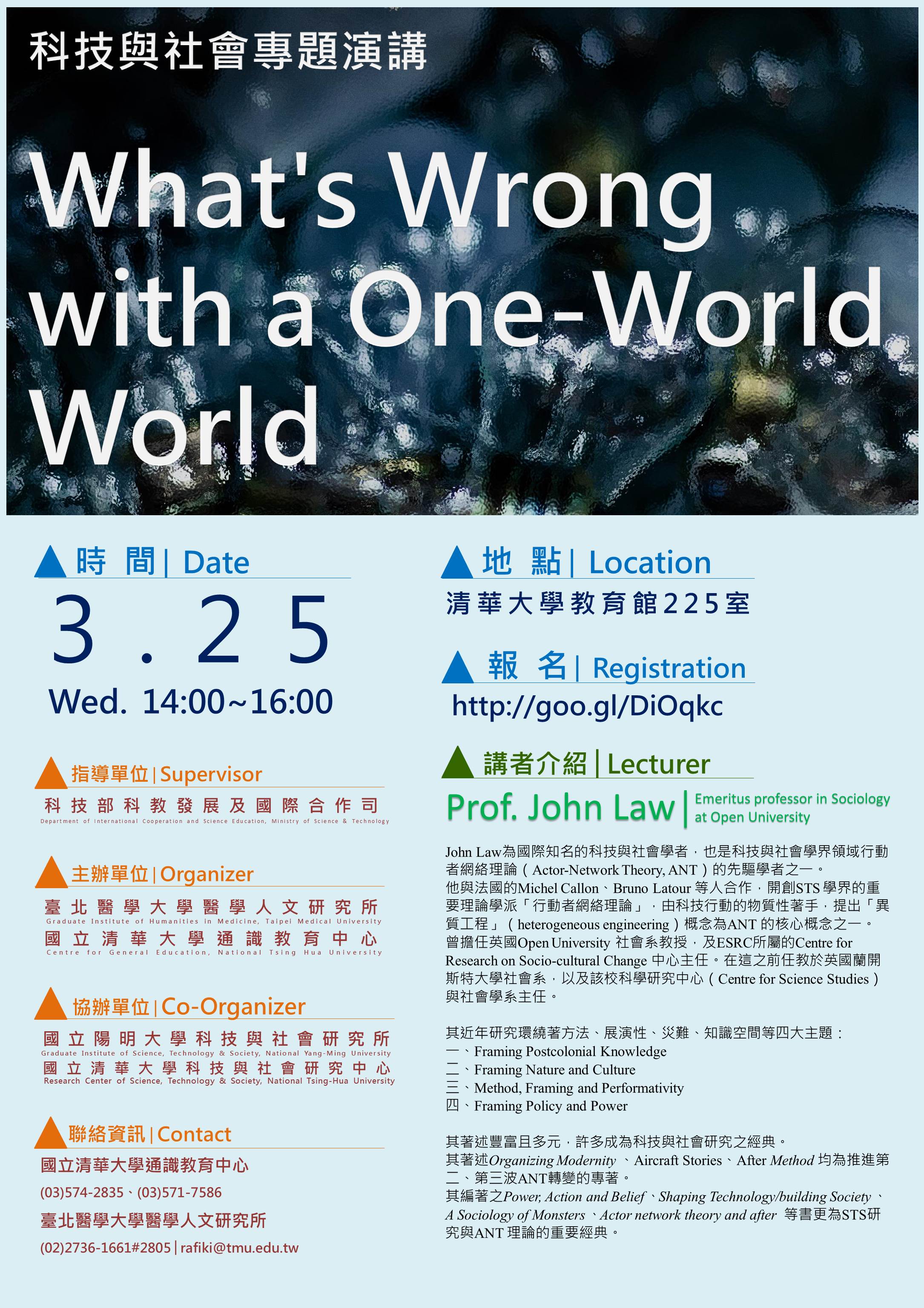 清華大學科技與社會專題演講:What's Wrong with a One-World World-John Law