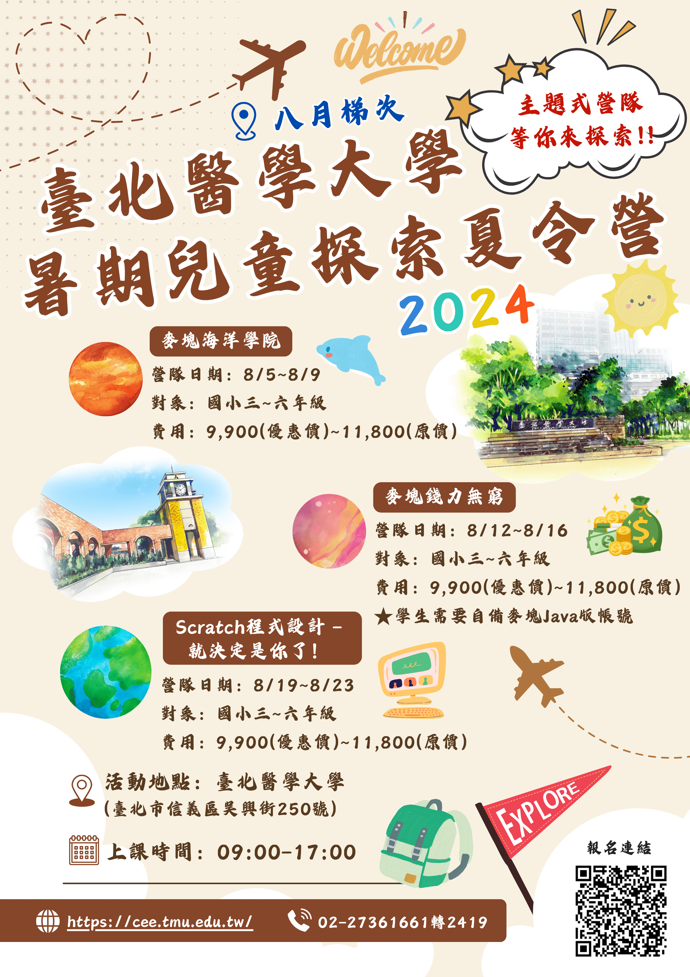 2024臺北醫學大學暑期兒童探索夏令營(8月梯)招生簡章