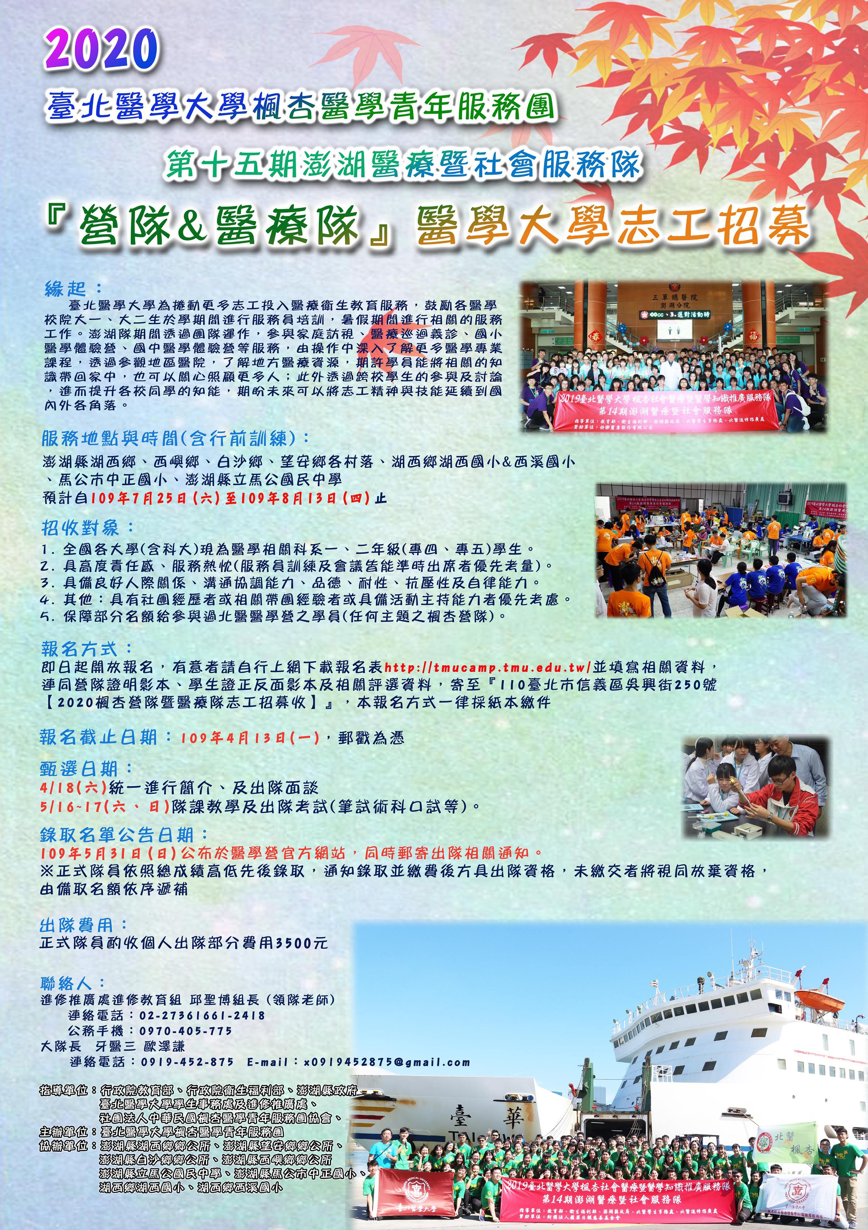 第十五期澎湖醫療暨社會服務隊 『營隊&醫療隊』醫學大學志工招募