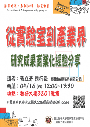 創業教育系列─從實驗室到產業界─研究成果商業化經驗分享